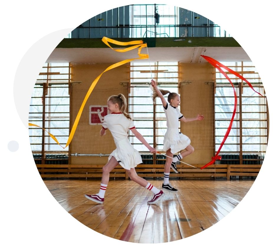 Una actividad que combina deporte, música y arte del movimiento. Los niños y niñas podrán trabajar elasticidad, coordinación y ritmo mientras se divierten con cintas, aros, pelotas y coreografías.